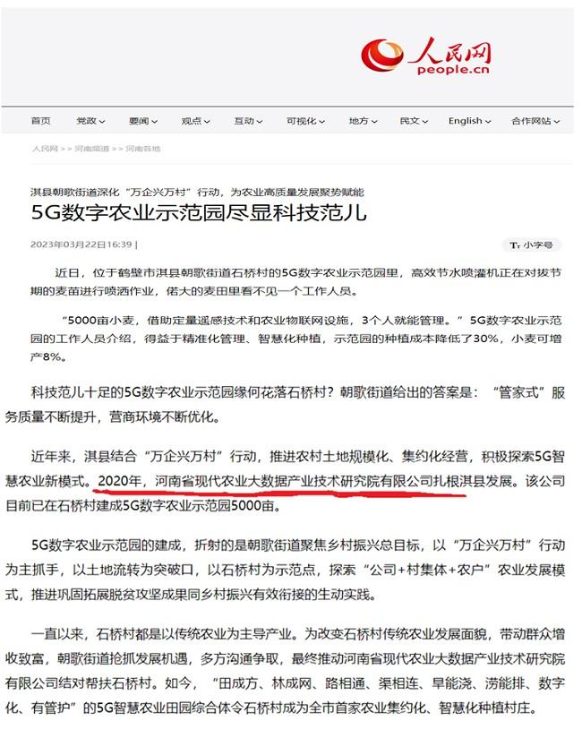 河南省現(xiàn)代農(nóng)業(yè)大數(shù)據(jù)產(chǎn)業(yè)技術(shù)研究院有限公司被人民日報等媒體報道