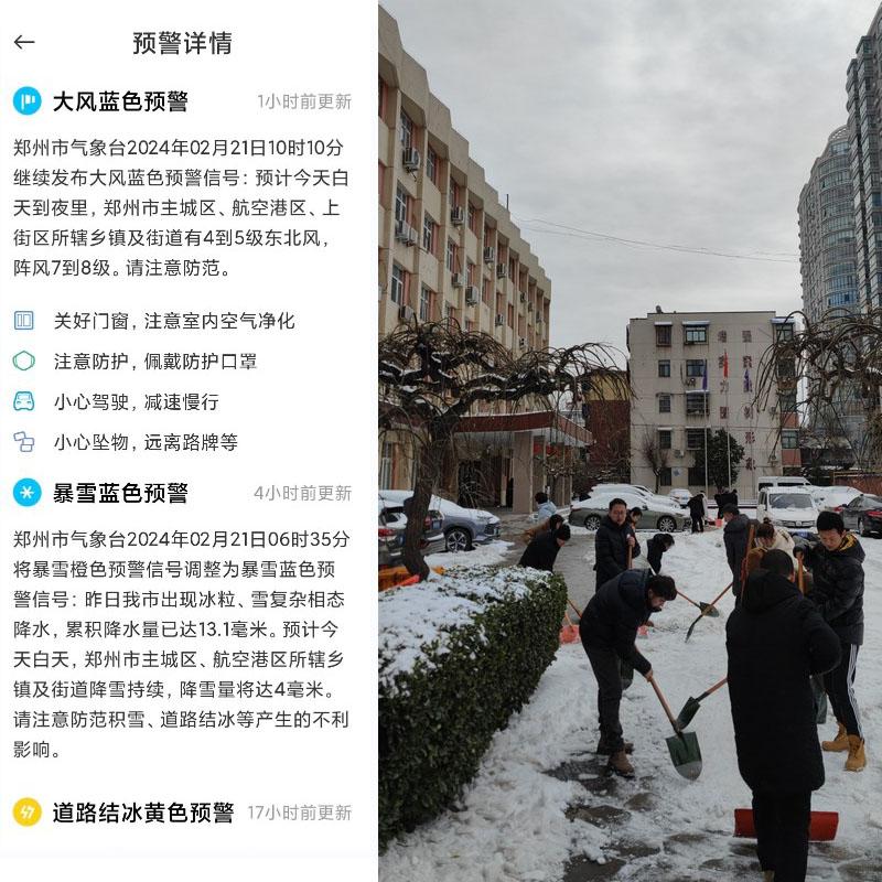 20日以來,我市遭遇雨雪冰凍天氣,氣象部門也連續(xù)發(fā)布了暴雪橙色、藍(lán)色預(yù)警,道路結(jié)冰黃色預(yù)警、大風(fēng)藍(lán)色預(yù)警。為消除極端天氣對(duì)正常生產(chǎn)生活秩序帶來不利影響和安全隱患,2月22日上午,物理所公司組織干部職工對(duì)家屬院、辦公區(qū)域及院門口道路進(jìn)行除雪清冰服務(wù)活動(dòng),為廣大職工及居民營造了安全、有序、文明、暢通的環(huán)境。