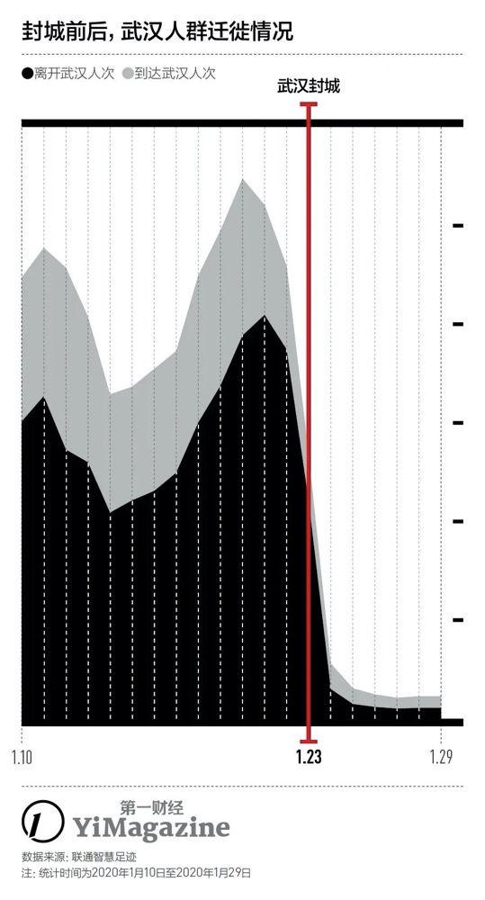 武漢封城之后,聯(lián)通智慧足跡大數(shù)據(jù)顯示,當(dāng)天流出的用戶量呈現(xiàn)斷崖式下跌,下降近一半。封城第二天,離開武漢的人口數(shù)接近冰點(diǎn)。從大數(shù)據(jù)的表現(xiàn)來(lái)看,武漢的封城效果是顯著的。